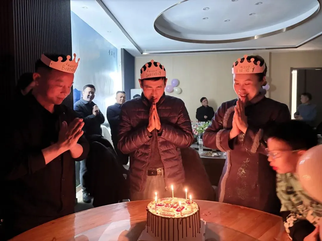 最令人动容的生日祝福环节如期而至。伴随着全场齐唱的《生日快乐》歌,承载着满满祝福的定制蛋糕缓缓推出,烛光摇曳间,映照出每位寿星幸福的笑脸。寿星们闭上眼睛,默默许下对生活的美好期许、对事业的蓬勃憧憬与对商会的兴旺祝愿。吹灭蜡烛的瞬间,掌声、欢呼声此起彼伏,甜蜜的蛋糕被分送到每个人手中,舌尖的甜意与心间的暖意交织,定格成最珍贵的团圆时刻。