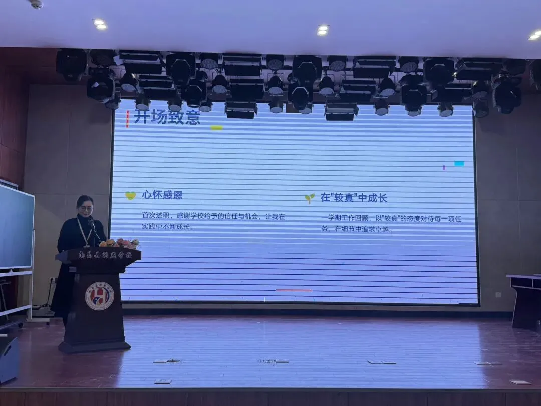 会上,各中层干部及年级组长依次登台,立足自身岗位职责,围绕本学期核心工作以务实的态度、翔实的案例、精准的数据,全面回顾了本学期的工作成效与履职历程。