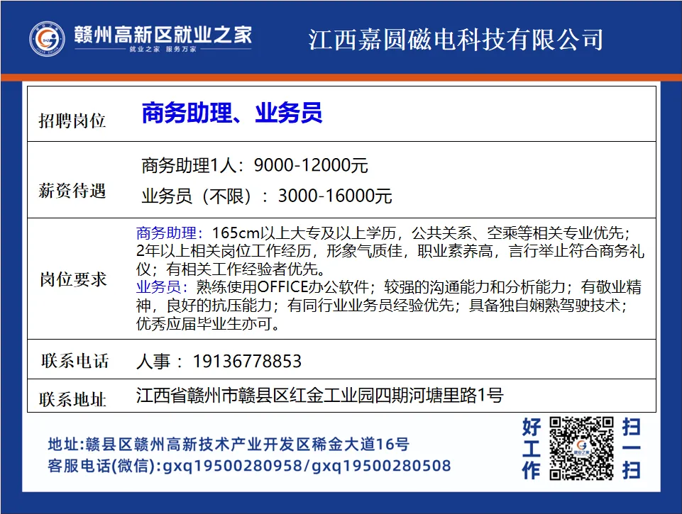 【赣州高新区就业之家】2026年2月最新岗位招聘合集(一)