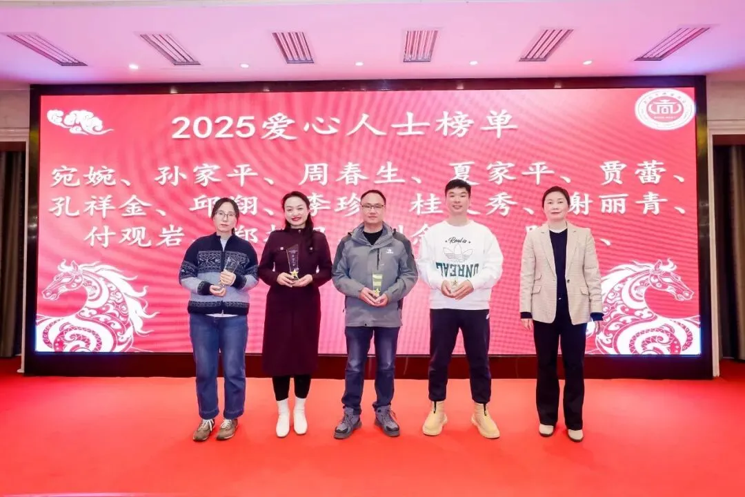 随后,晚会进行了隆重的表彰环节。九江市政府驻南昌办事处党组成员、副主任肖孝昌,德安县政协副主席、工商联主席罗丹上台,为荣获“2025年度商会爱心人士”称号的会员颁奖,表彰他们在过去一年中积极践行公益、回馈社会的善行义举。