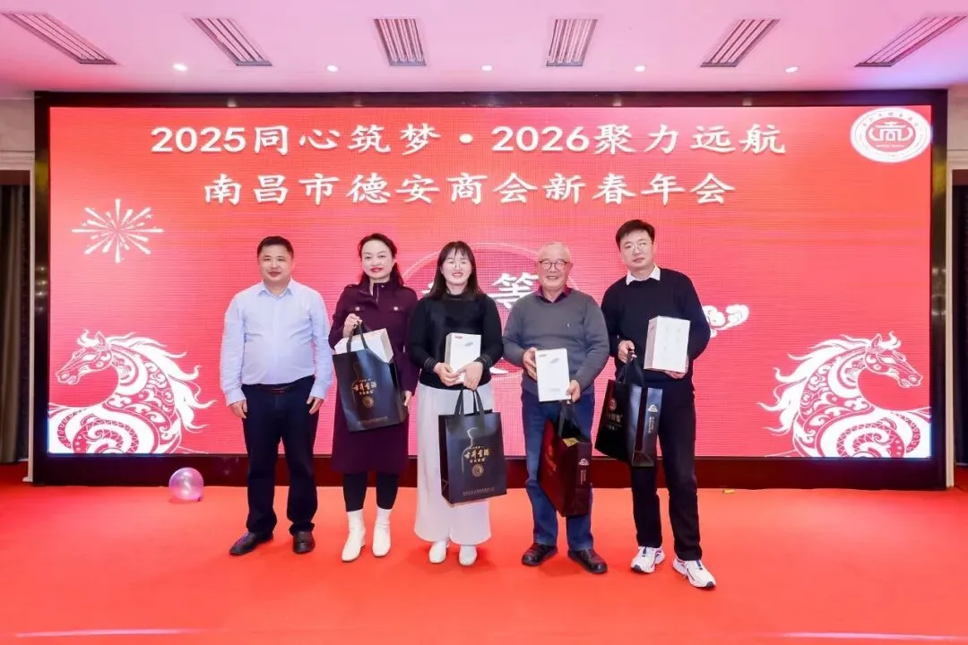 岁序常易,华章日新。2026年新春将至,南昌市德安商会“2025同心筑梦·2026聚力远航”新春年会在一片欢腾与期许中圆满落下帷幕。本次晚会以乡情为纽带、以发展为主题,商会会员与特邀领导嘉宾齐聚一堂,叙情谊、话未来、谋共赢,共同度过了一段难忘的时光。