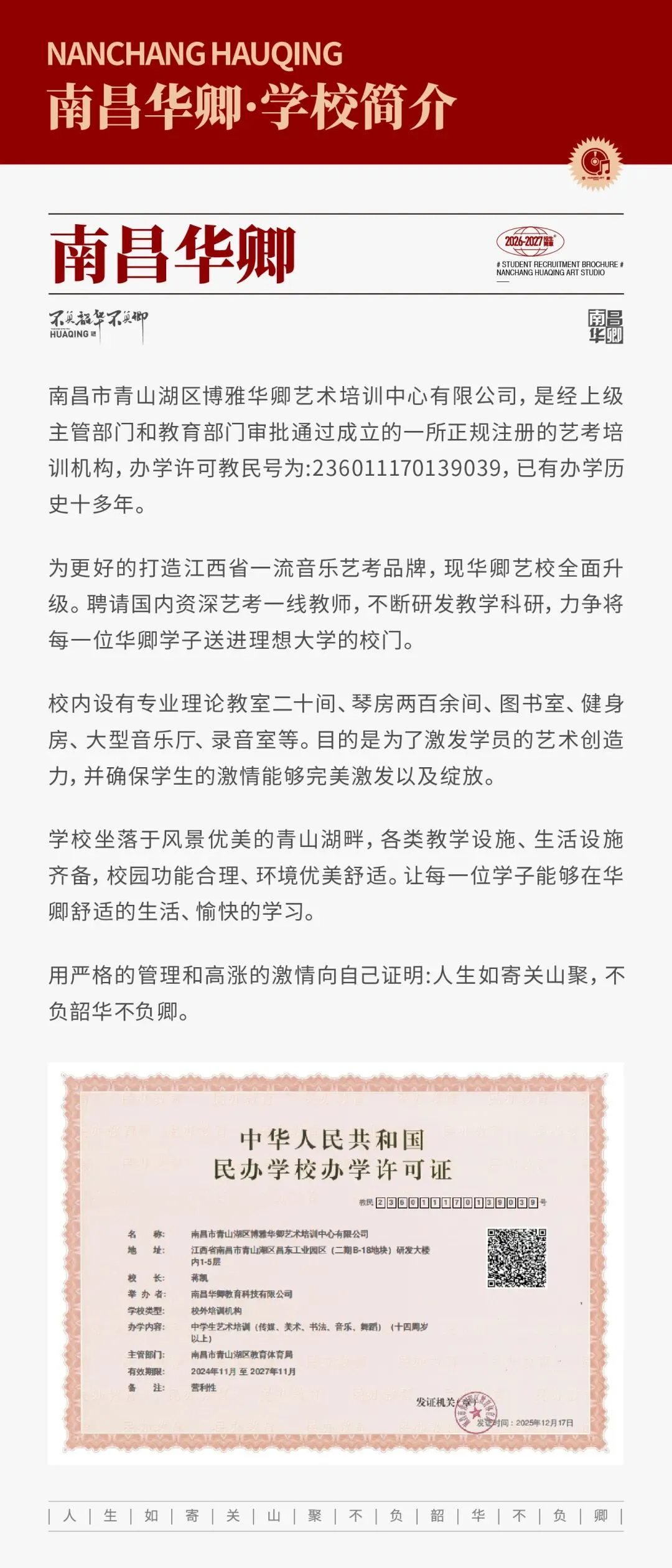品牌决定高度,质量战胜一切!南昌华卿音乐2027届招生简章