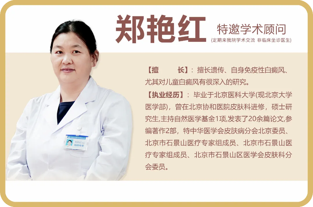 从事皮肤科临床工作多年,尤其对儿童/青少年白癜风有深入研究,强调中西医结合治疗白癜风,标本兼顾,运用技术联合手段,系统性、规范化治疗各类疑难白癜风。