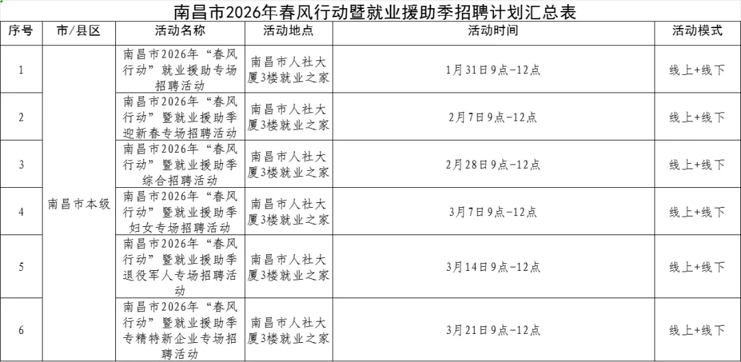 春暖助团圆 春风促就业 | 南昌市2026年春节前后公共就业服务系列招聘活动
