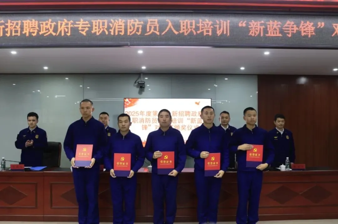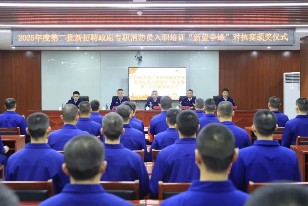 为全面检验新招聘政府专职消防员在第一阶段培训期间的训练质效,进一步激发训练热情,近日,抚州市消防救援支队组织开展2025年第二批新招聘政府专职消防员入职培训“新蓝争锋”第一阶段对抗赛。支队政治部任勇主任出席活动并参加颁奖仪式。