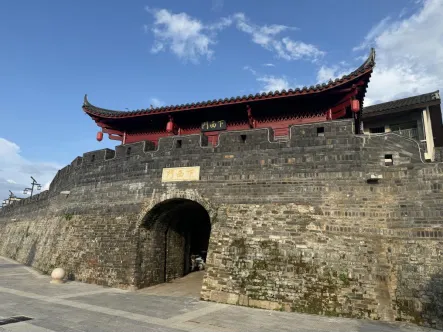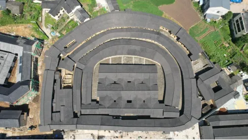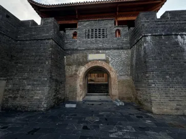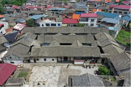 武当田心围位于龙南市武当镇大坝村田心小组,105国道南侧60米处的田中央,围屋由此得名。田心围屋始建于明末清初,是盘龙状客家围屋的经典建筑,总占地面积8480平方米,建筑面积10508.66平方米。武当田心围坐西朝东向,围前有半月形池塘,围为半月形的房舍建筑,整体形势为前低后高、前方后圆状,围屋中心是一栋三进式方形祠堂,以此为中心环建三圈,是“三堂六横三围拢”砖石、土木结构的封闭式半圆形建筑。