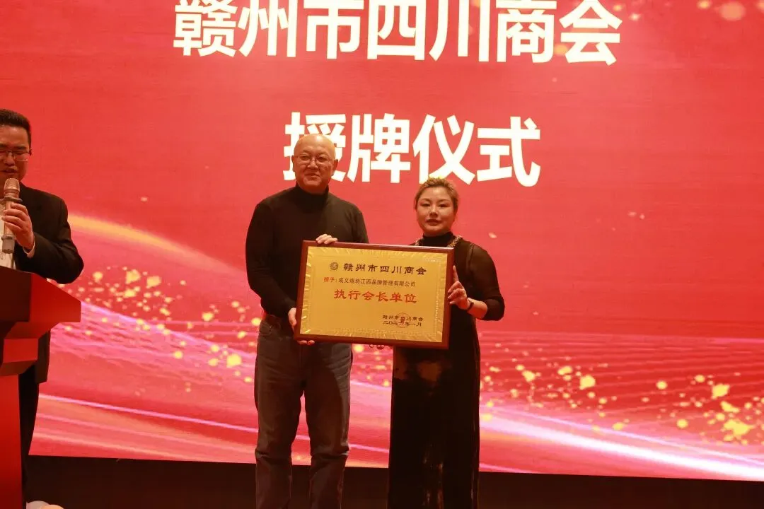 凝聚乡情,共贺新春;活动伊始,赣州市四川商会会长李华勇发表新春致辞。他首先代表商会,向全体在赣川籍乡贤及家人致以最诚挚的节日问候和美好祝愿。李会长回顾了过去一年商会在服务会员、凝聚乡情、促进赣川两地经贸交流等方面所取得的成绩,并对新一年的工作进行了展望。他强调,商会将继续发挥好桥梁纽带作用,为会员企业的发展赋能,为赣川两地的合作贡献力量。授牌表彰,见证成长;随后,活动举行了庄重的授牌仪式,顾问徐林楠为新加入的执行会长单位颁发牌匾,这不仅是一份荣誉,更是一份责任,标志着商会队伍的进一步壮大。授牌仪式后,会长李华勇与商会核心成员共同举杯祝酒,向所有关心和支持商会发展的各界朋友表示感谢,现场气氛热烈而温馨。