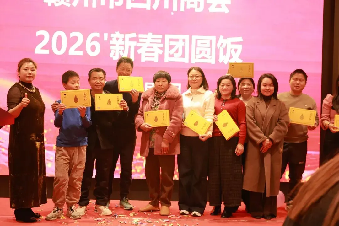 幸运抽奖,温情时刻;团圆饭席间,还穿插了激动人心的抽奖、歌曲竞飙和互动游戏环节。赣南脐橙、贵州刺梨、熊胆粉等新春礼盒丰厚奖品被一一送出,欢声笑语此起彼伏,为团圆饭增添了浓浓的年味。觥筹交错间,川音乡情交融,大家在品尝美酒佳肴的同时,会员、老乡歌唱组为大家献上温暖而动听的歌曲,大家也分享着各自的奋斗故事与新年期许,现场洋溢着“一家亲”的温暖氛围。此次新春团圆饭不仅是一场温馨的乡情聚会,更是一次凝聚共识、共谋发展的盛会。与会嘉宾纷纷表示,将以此次活动为契机,进一步加强沟通与合作,在新的一年里携手并进,共同开创赣州市四川商会更加美好的明天,为赣川两地的经济社会发展贡献新的更大力量。