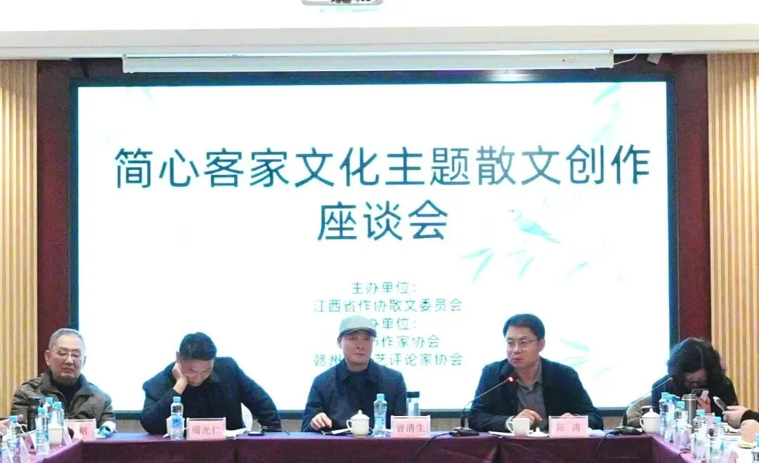 1月25日,简心客家文化主题散文创作座谈会在我市举行。本次活动由江西省作协散文委员会主办,赣州市作家协会、赣州市文艺评论家协会联合承办。江西省文联兼职副主席、省作协主席曾清生出席并讲话,市文联党组书记、主席周光仁,市文联党组成员、副主席邵滢出席。《人民文学》副主编陈涛,《光明日报》文荟版副主编、高级编辑饶翔,著名散文评论家古耜,漓江出版社副社长、作家、评论家张杰,《散文海外版》主编王燕,《人民文学》编辑胡松夏、张天宇,《百花洲》执行主编、青年散文家朱强等来自全国各地的文学界专家学者,与赣州本地30余位作家、评论家齐聚一堂,围绕赣南客家文化及简心的客家文化主题散文创作展开深度研讨。
