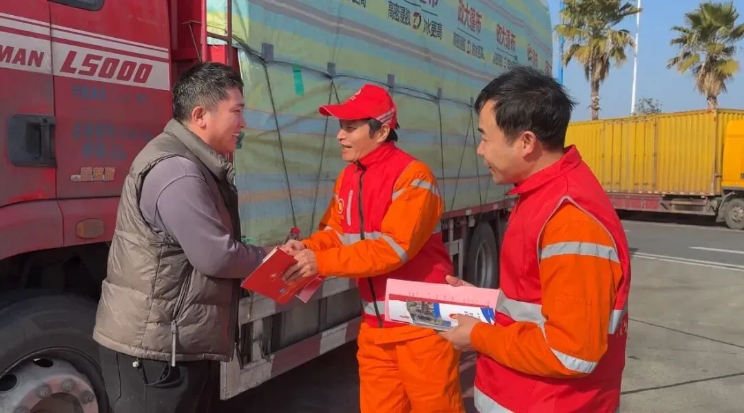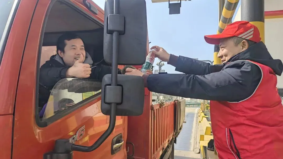 志愿者们坚守服务一线,一边全力保障收费车道畅通有序,助力司乘高效通行,一边热情接待过往司乘,提供全方位便民服务。他们亲手将一份份承载着祝福与关怀的“暖心礼包”递到司乘手中,轻声送上新春的诚挚问候;面对司乘的咨询,他们耐心细致解答,详细指引行车路线、讲解春运期间高速路况、普及ETC办理流程,用专业与热情化解司乘的旅途困惑;针对长途奔波的货车司机,志愿者送上热饮与食物,反复提醒他们注意行车安全、劳逸结合,缓解旅途疲惫。