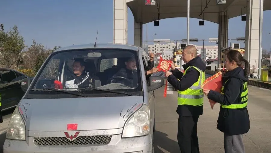 “没想到刚上高速就收到这么贴心的礼物,太惊喜了,一下子就感受到了过年的氛围!”一位外地司乘接过志愿者送上的“福”字和“中国结”,脸上洋溢着幸福的笑容,连连竖起大拇指点赞。
