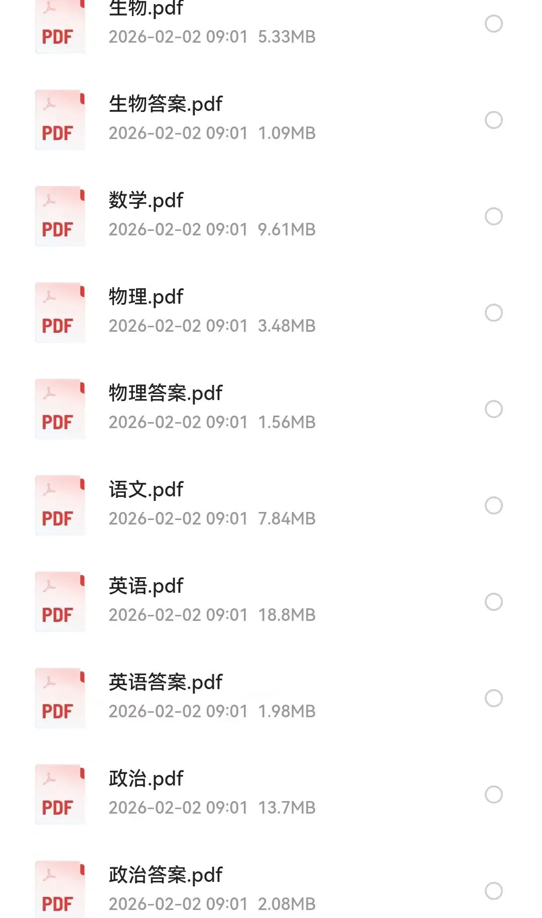 各科试题及参考答案下载:
