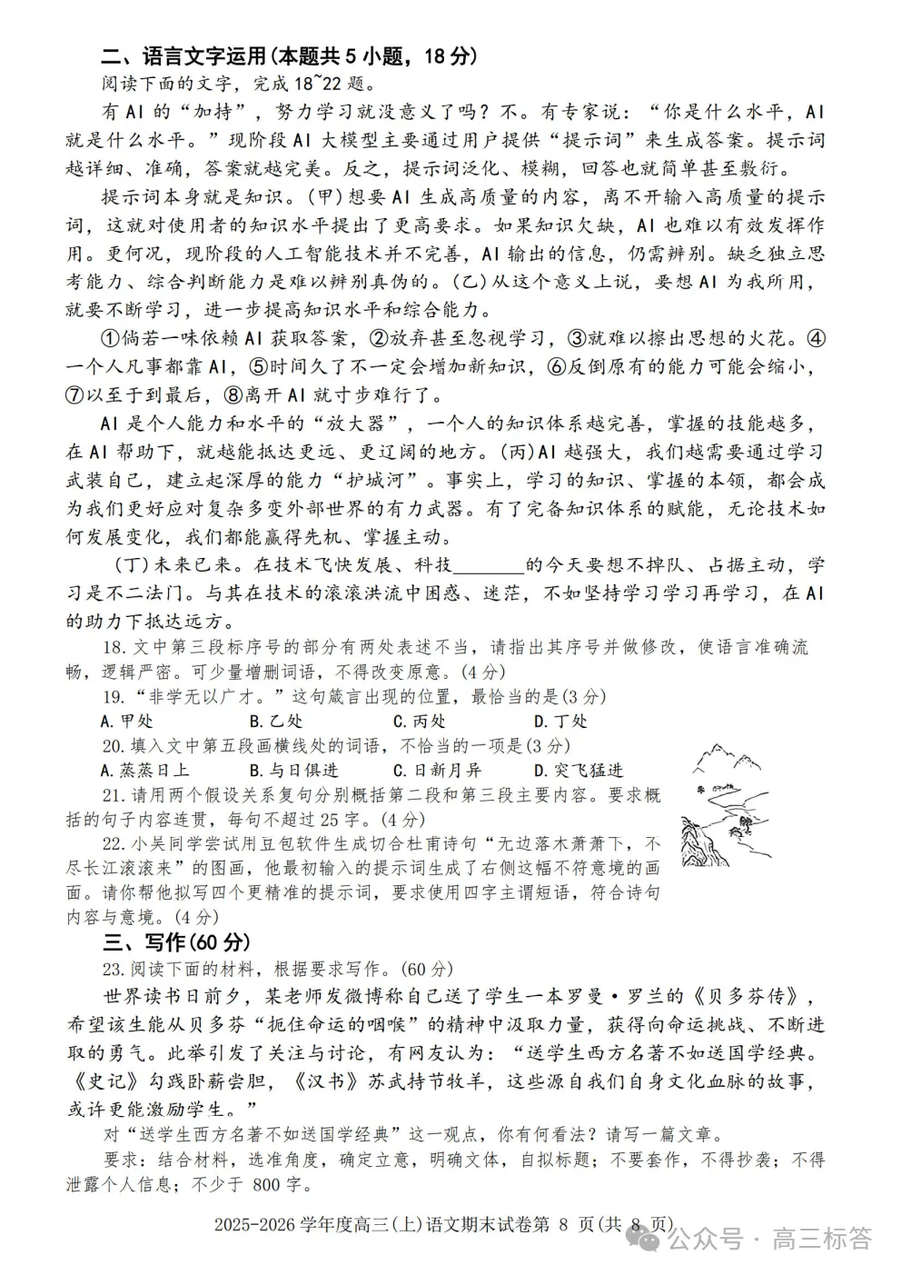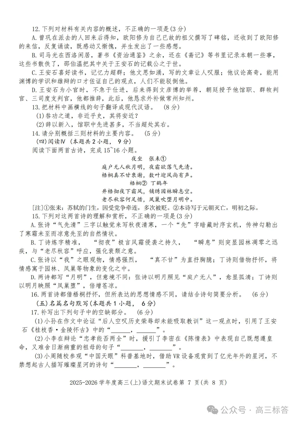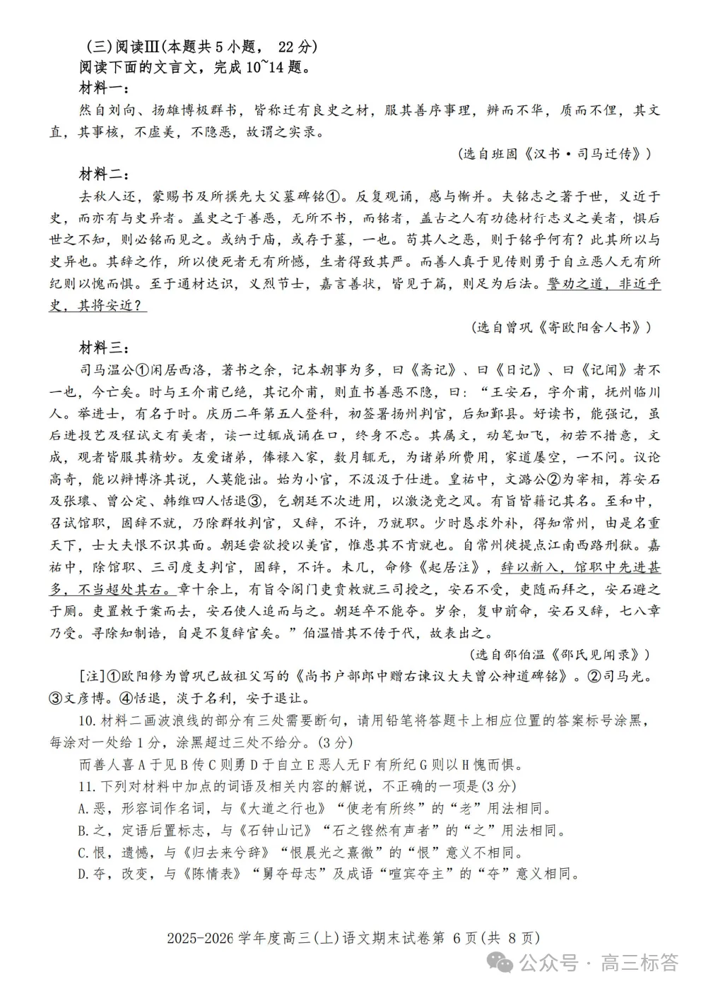 赣州市2025-2026学年度高三期末考试【语文物理历史完整版答案pdf电子版】