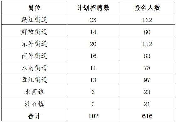 >赣州市章贡区2026年社区工作者(专职网格员)报名人数公布(截至2月2日17时)