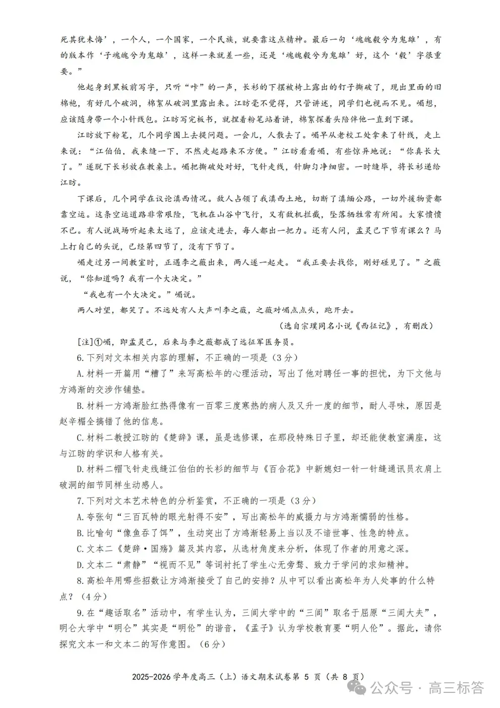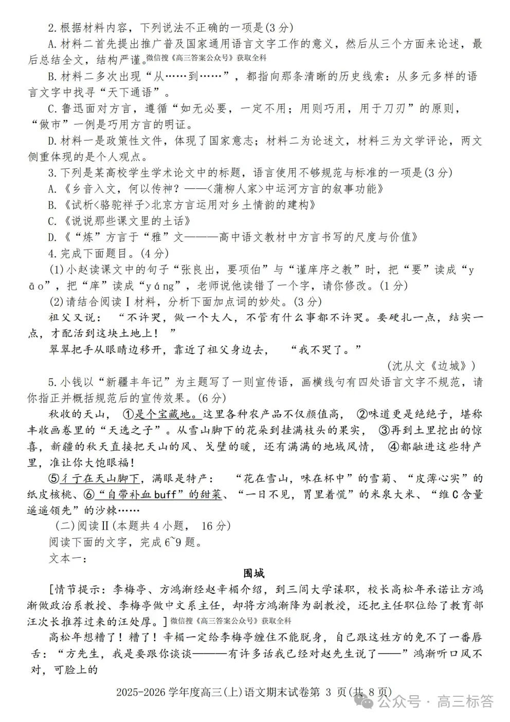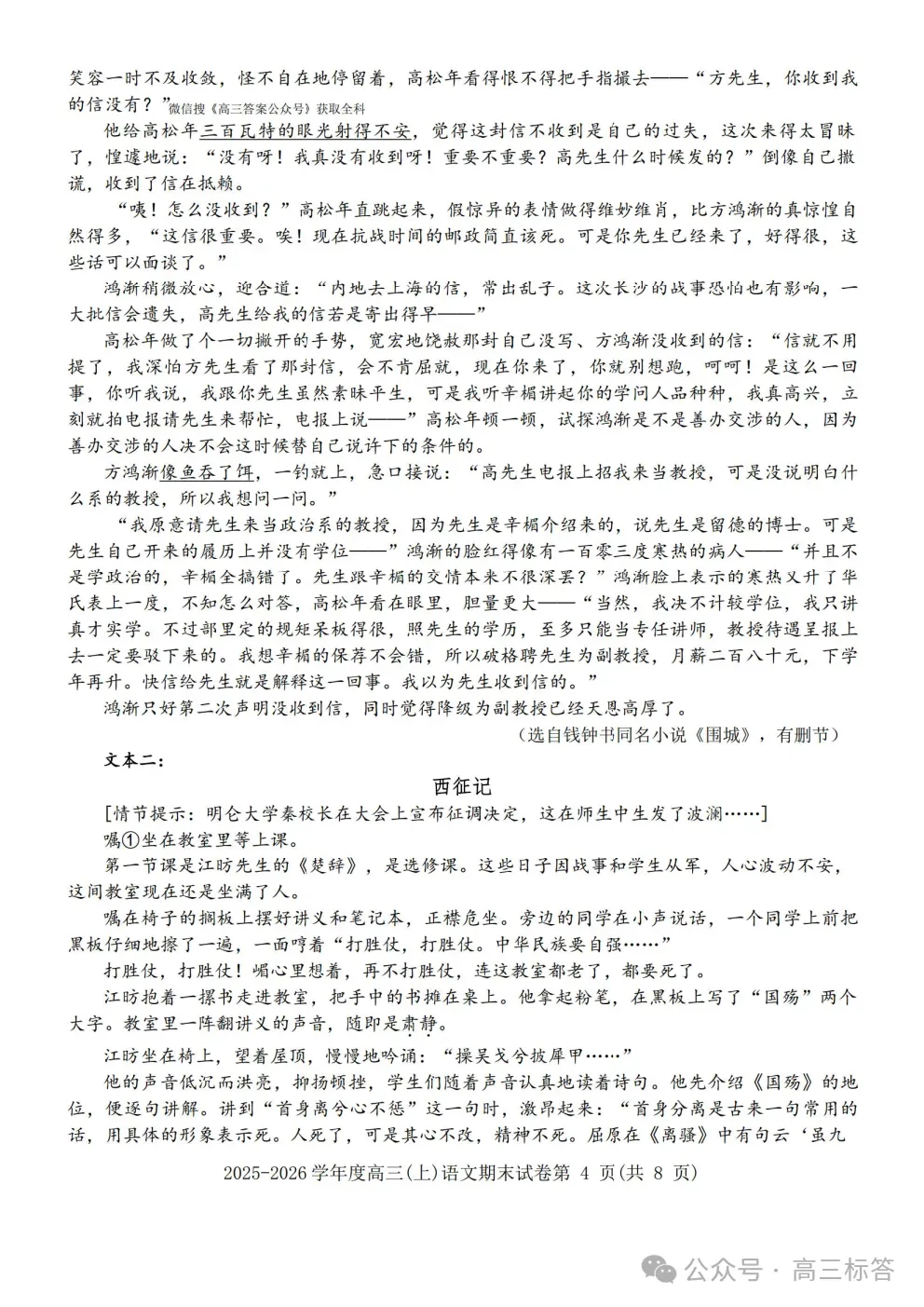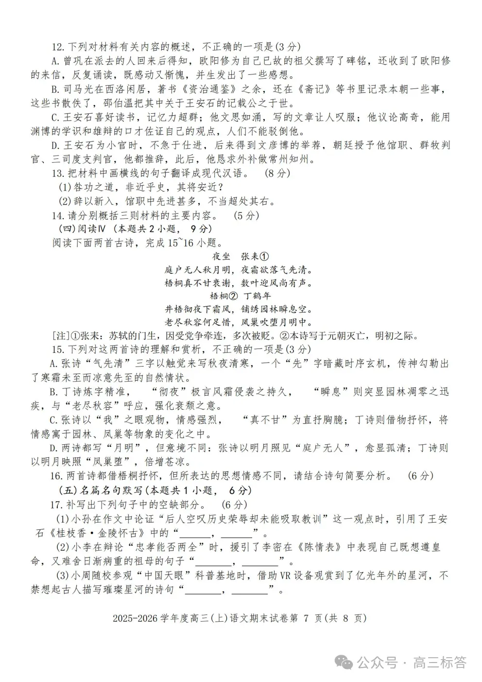 赣州市2025-2026学年度高三期末考试【语文物理历史完整版答案pdf电子版】