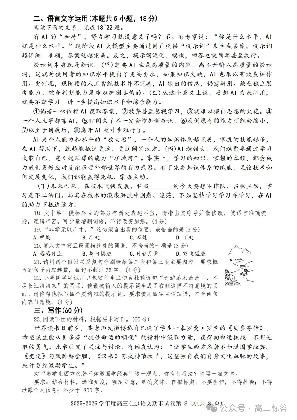 赣州市2025-2026学年度第一学期期末考试高三语文(含答案解析)