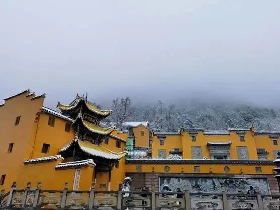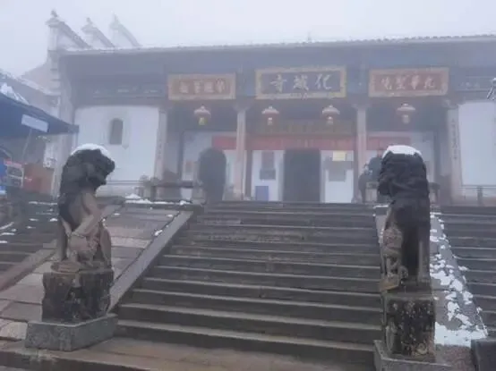 8、上百岁宫有缆车坐,来回100元,但是对于我这种省钱狂魔来讲,腿上去100元大钞轻松拿捏即便是大雪满山,我也要独来独往。记住,所有寺庙17点关门。百岁宫下来后,再去完化城寺出来就实在走不动了,等打完电话给民宿老板后就呆呆地在KFC门口等车,手机也快没电了。