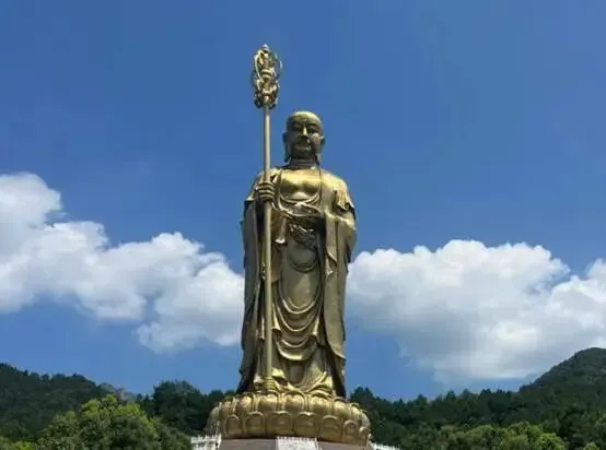 11、从花台景区坐大巴返回游客中心,大约10分钟。路上会经过大愿文化园,可以到高99米的地藏王菩萨铜像边上,体验抱佛脚的感觉。那是你距离成功最近的时候,一切都稳了。
