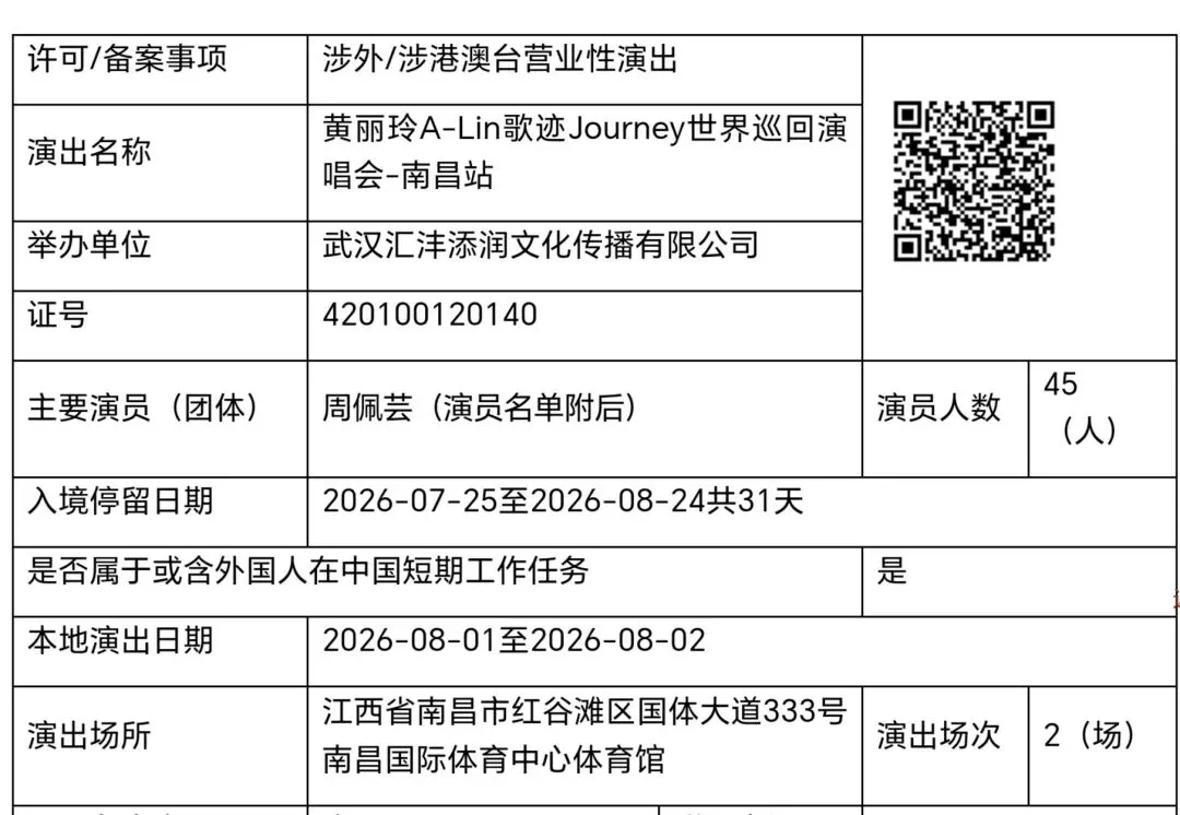 2026年8月1日,2日 — 黄丽玲— 南昌演唱会