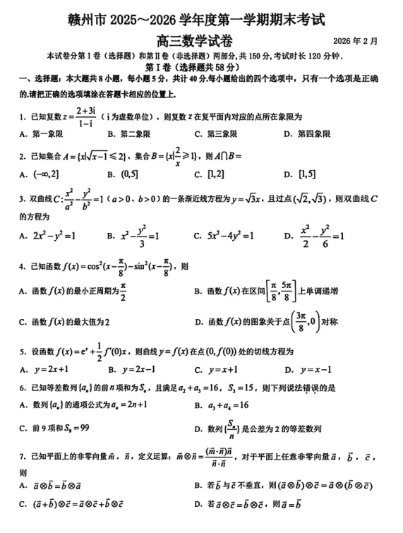 我用夸克网盘给你分享了「赣州市2025-2026学年度第一学期期末考试高三数学试题.zip」,点击链接或复制整段内容,打开「夸克APP」即可获取。