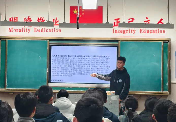 9月,各团支部以“铭记历史,砥砺前行”为主题开展团日活动。通过专题学习、史实回顾、知识问答等形式,同学们深入感悟革命先辈的奋斗足迹与民族复兴的艰辛历程。一段段厚重历史,化作砥砺前行的精神养分;一次次沉思交流,让爱国情怀与责任担当在年轻的心中扎根生长。