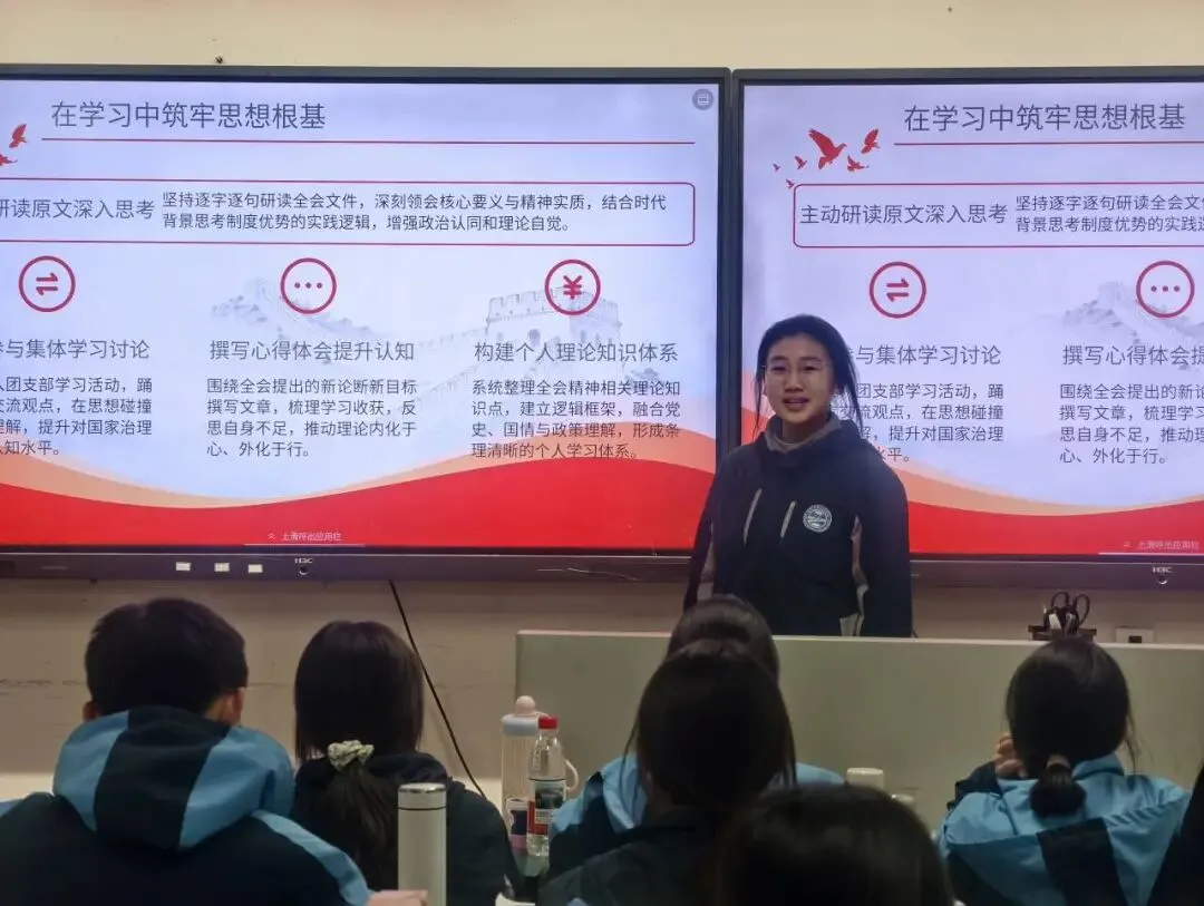 十一月,各团支部组织开展了“学习贯彻党的二十届四中全会精神”主题学习。活动引导团员青年深刻把握全会的重大意义与核心要求,系统学习党的创新理论及其蕴含的立场观点方法,并立足世情国情党情的深刻变化思考青年责任。通过学习,同学们增强了以科学理论指导实践、将个人成长与国家治理现代化进程相结合的思想自觉与行动自觉。