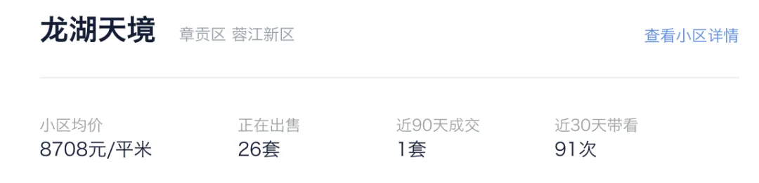 总的来看,受大环境影响,过去两年,赣州城区配套相对匮乏的边缘板块、当初被市场情绪炒出来的新兴板块,二手价格都出现了明显的下滑。位于管委会板块的龙湖天境,当初高位入市,后续小区交付品质又未能跟上,再叠加板块热度的回落,所以成交价出现了超跌。