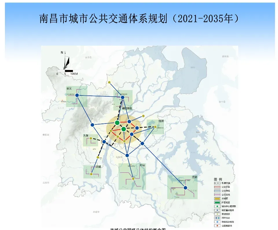 近日,南昌市自然资源和规划局公示了南昌市城市公共交通体系规划(2021-2035年)。该规划范围与《南昌市国土空间总体规划(2021-2035)》一致,分为市域7195平方公里范围、中心城区(统筹考虑南昌县中心城区和赣江新区直管区)两个规划范围,重点研究中心城区范围内的公交体系规划布局。