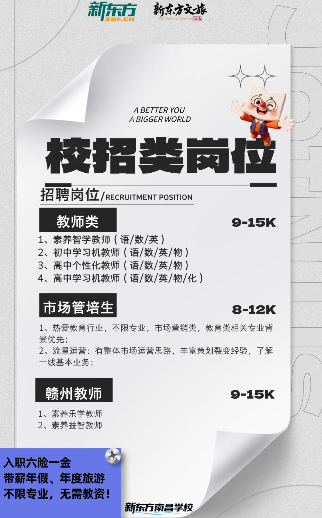 岗位:素养教师(英 / 数 - 赣州工作)