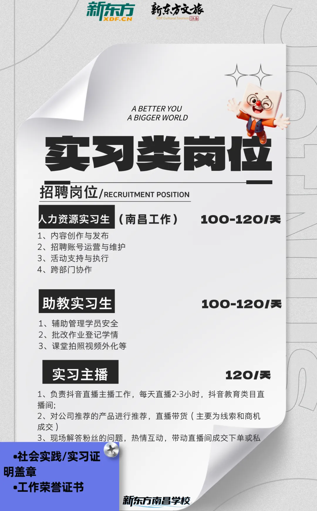 岗位:人力资源实习生(南昌工作)