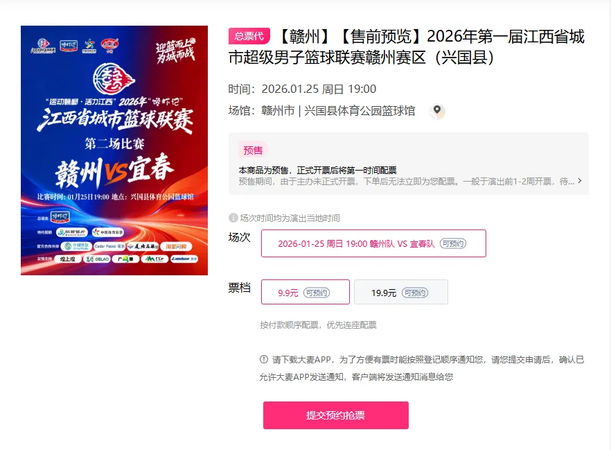 赣BA赣州vs宜春巅峰对决来袭,9.9元起抢票,1月25日兴国见证热血时刻