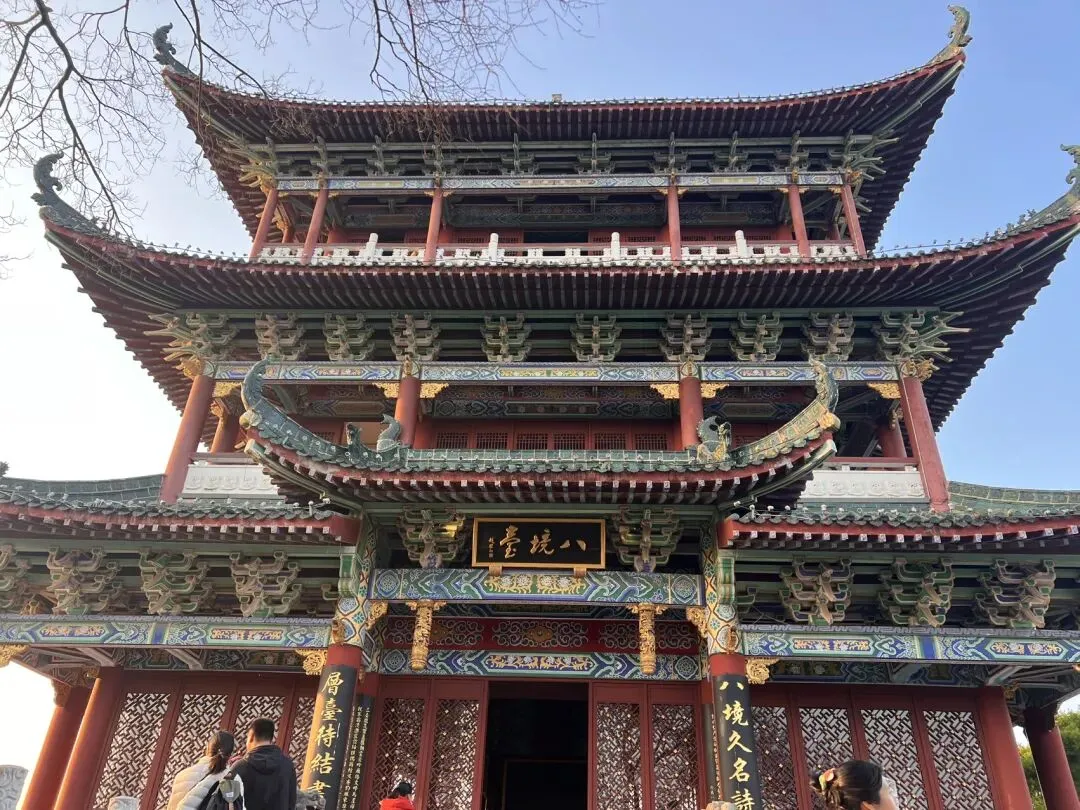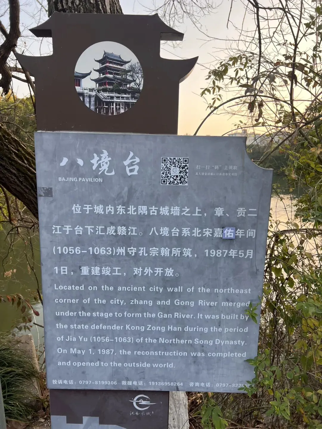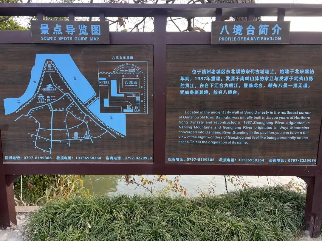 从城墙出发,步行十分钟左右,便到了林木葱葱的郁孤台——这座因辛弃疾《菩萨蛮·书江西造口壁》闻名的历史地标,也是赣州古城的制高点,登高远眺,赣州城的全貌尽收眼底,山水城郭的景致一览无余。