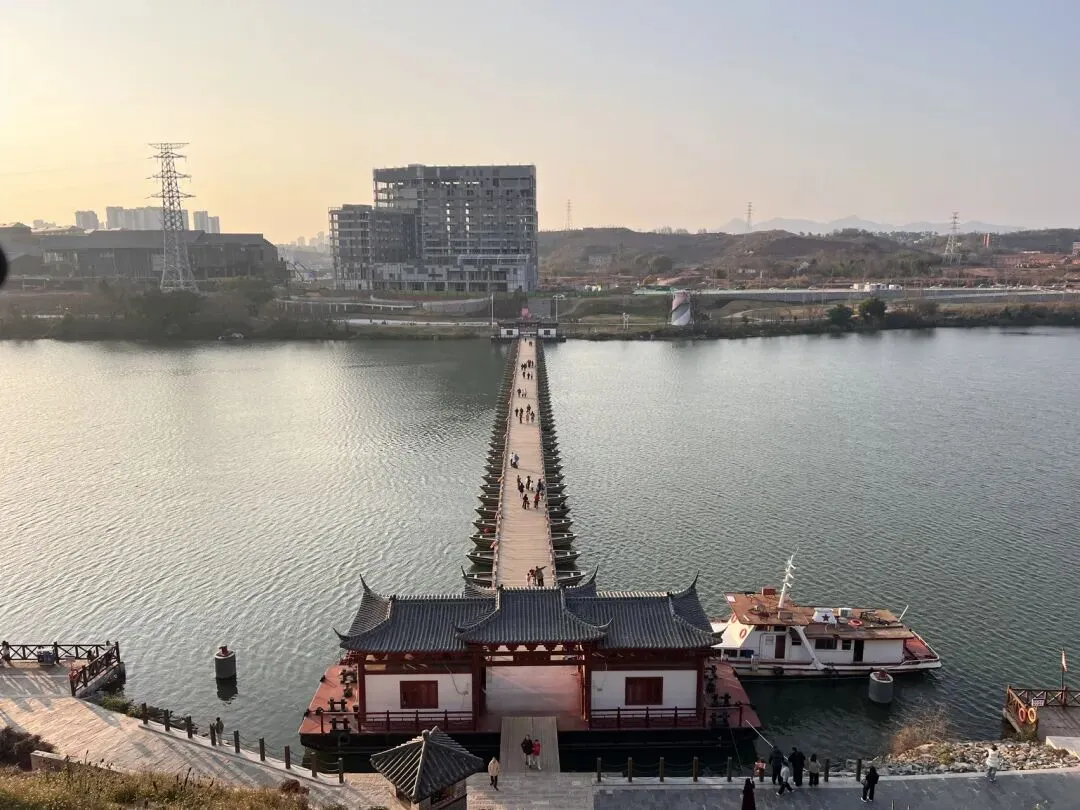 走到八境台,这里的视野更是开阔,是拍摄赣州全景的绝佳位置,站在台上,一边是古城的古韵悠悠,一边是城市的烟火繁华,动静之间,尽是赣州的独特魅力。还有古浮桥,更是赣州独有的风景。在赣江上,这个浮桥沿用了 800多年。这个长约400米的浮桥,是用100多个木舟并列,用绳索相连固定在江面上。踩着古朴的浮桥慢慢走,看两岸江景缓缓流淌,别有一番江南韵味。