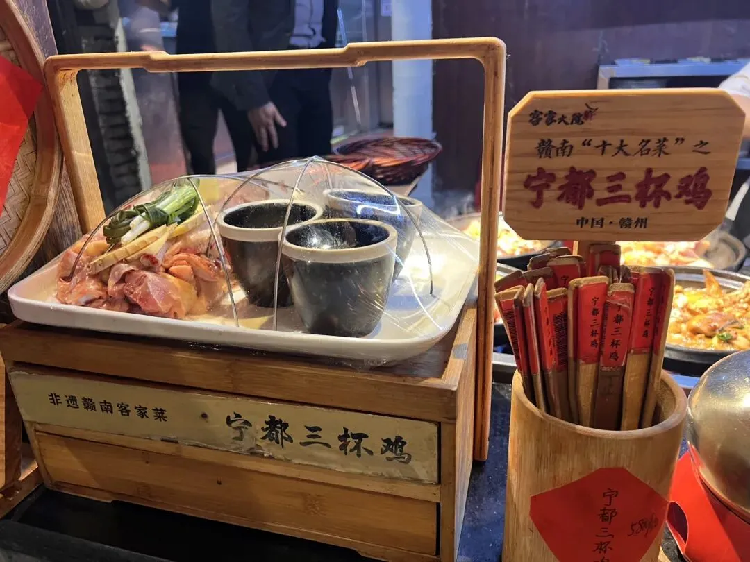 逛完这些景点,不知不觉傍晚6点多,直奔当地人气馆子客家大院。这家店规模超大,进门由服务员安排座位,点餐方式也很有趣——看中哪个菜就拿一个筹码,最后统一交给服务员即可。除了包厢,还有好几个宽敞的大厅,热闹的氛围像极了喝喜酒,超有烟火气。