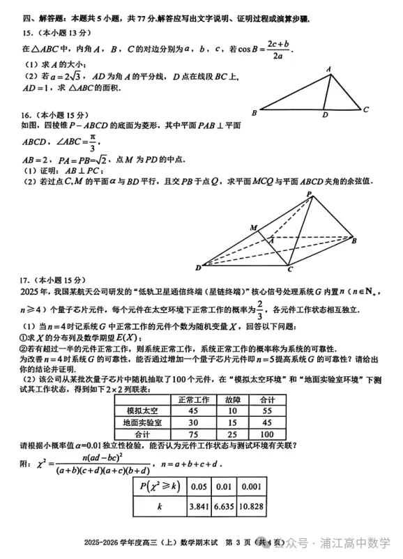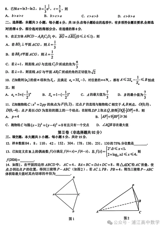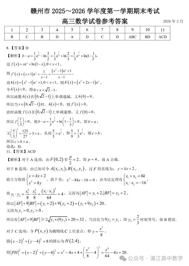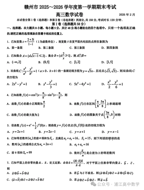 高三数学 |赣州市2025-2026学年度第一学期期末考试高三数学试题2026.1