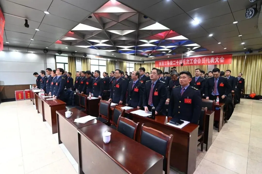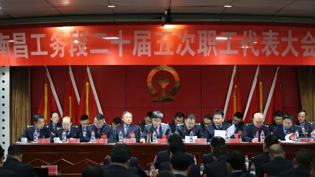 南昌工务段二十届五次职工代表大会、二十届五次工会会员代表大会在《咱们工人有力量》的歌声中胜利闭幕。