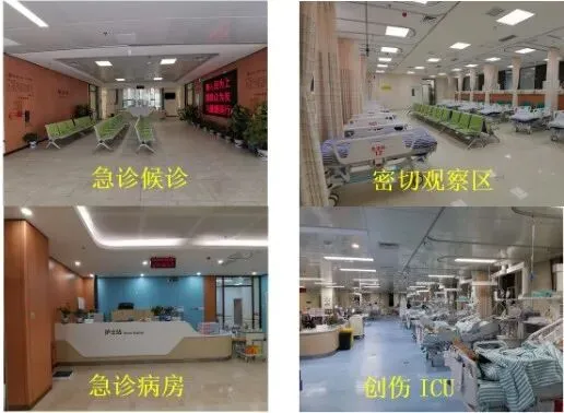 2014年急诊外科病房成立时仅有27张编制床位,经历11年的发展,目前东湖、象湖院区各设有急诊外科病区一个、象湖创伤ICU1个、象湖急诊外科抢救室1个,共计编制床位126张。2014年组建了以急诊外科为核心的创伤救治团队,打造了以“急诊外科”为实体的“一专多强”创伤中心建设模式。一专:东湖院区配备两间急诊手术室,象湖院区配备7间急诊手术室,其中有DSA复合手术室、CT复合手术室、磁共振杂交手术室及空中救援专属停机坪等,能够及时开展各类创伤、急腹症的确定性及损伤控制手术、各类急症的空转转运和救援。多强:立足急诊外科特色设置腹部创伤及急腹症病区,整合设立创伤骨科病区、颅脑创伤病区,建有专业的创伤ICU(TICU),进行各类创伤患者综合救治。一楼配有400余平方米的急诊外科抢救室,可同时展开18位急危重症的抢救监护,已开展心肺复苏、气管插管及气管切开、动静脉置管、机械通气、心电监护、电复律、三腔两囊管压迫止血等抢救技术。TICU设有18张床位,用于收治严重创伤患者,目前已开展CRRT、血浆置换、血流动力学监测、亚低温治疗、纤支镜床旁治疗及床旁快速检测等技术。在创伤中心一层有占地3000余平方米的急诊辅助检查区域,设有急诊检验室、B超室、急诊放射、CT、MRI以及心电图室等辅助科室,能提供7×24小时的便捷急诊辅助检查。拥有方便快捷的急诊专用药房、挂号收费独立,各医疗区域齐全,日夜标识清楚,急诊专用绿色通道畅通。在急诊大厅设有密切观察区,配有10余床位的吸氧监护设备,又可作为突发公共卫生事件临时应急处置单元。