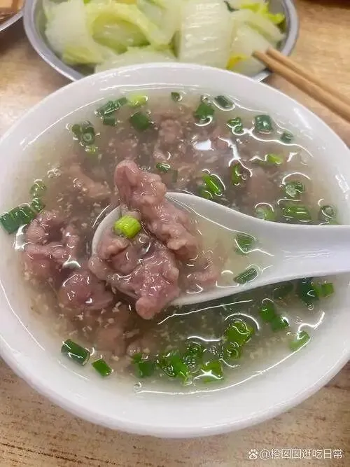 牛肉要现切现烫,刚端上来的时候还在微微颤动。喝一口汤,姜丝的辛辣混着牛肉的鲜甜,瞬间把毛孔都打开了。