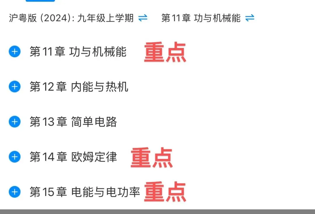 只需要锁定三个核心板块,就能抓住考试的大部分分值,这三个板块就是教材的第十一章、第十四章和第十五章,南昌本地绝大多数初中的物理考试,难点、重点、高频考点全部集中在第十四章和第十五章,这两章的分值占比超过试卷的一半,是拉开学生分数差距的核心模块。