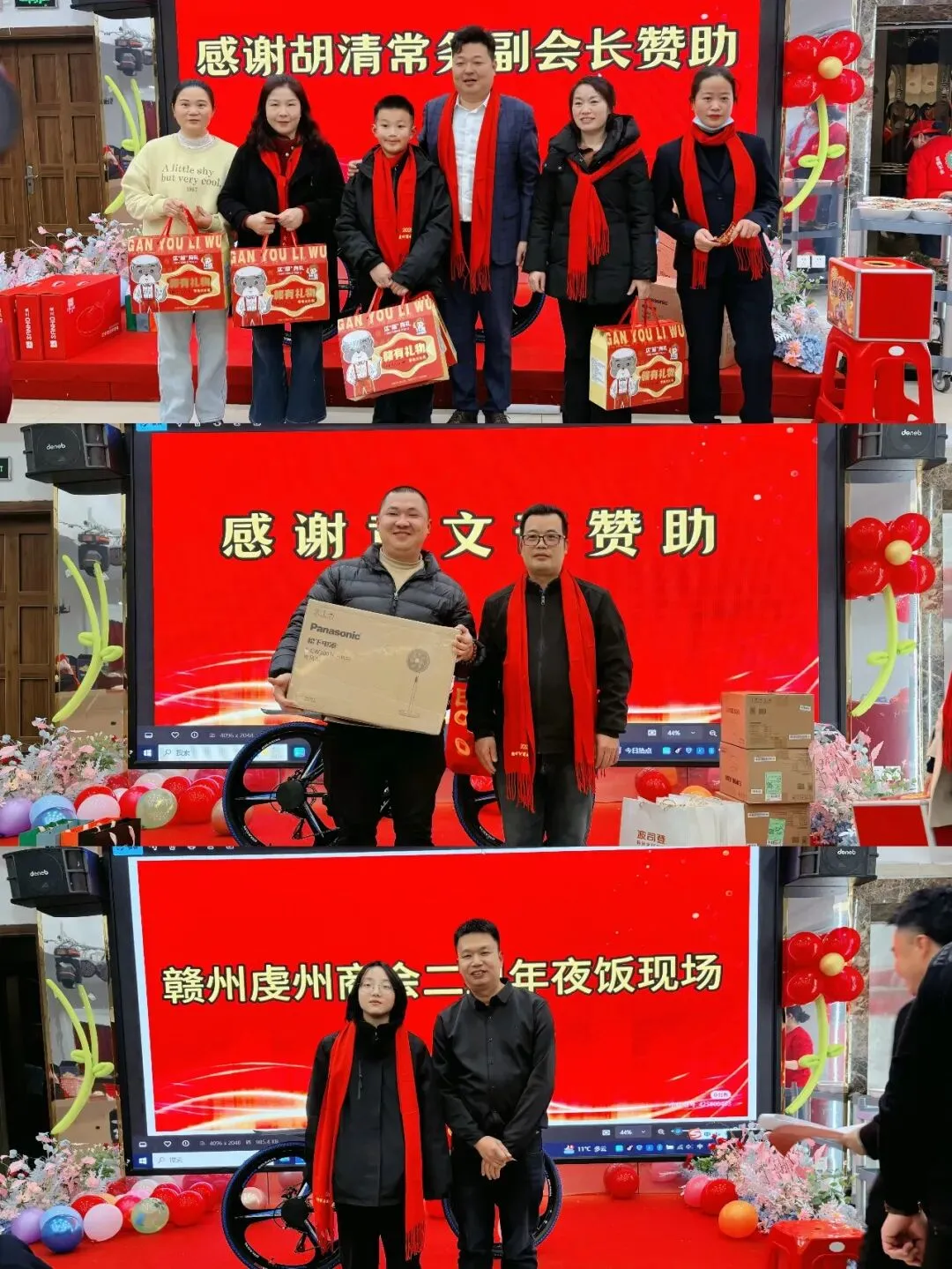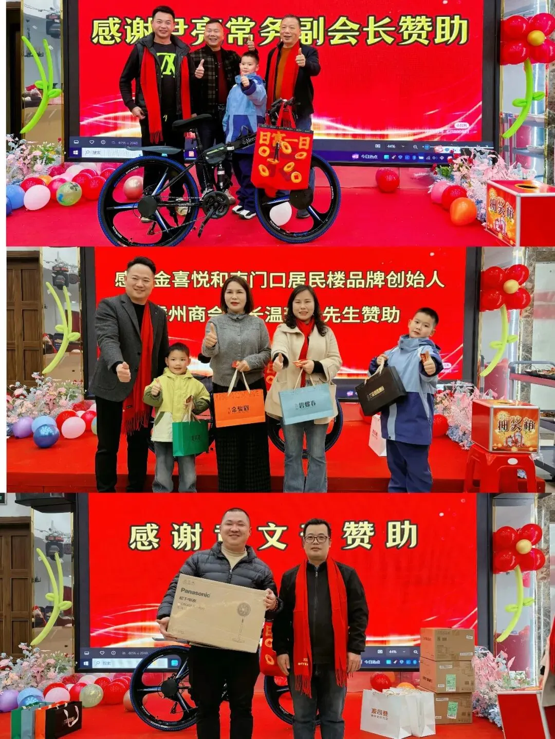 最令人期待的抽奖环节更是将晚宴推向高潮,本次活动精心筹备了丰厚奖品:奔驰自行车一辆作为终极大奖,另有苏泊尔电器、松下电器、无人机等实用好物,每一份奖品都承载着商会对成员的诚挚关怀。随着奖项的逐一揭晓,现场掌声、欢呼声此起彼伏,幸运之神眷顾着每一位到场者,实现了“人人有奖、满载而归”的美好愿景,让团圆的喜悦更添一份惊喜与暖意。