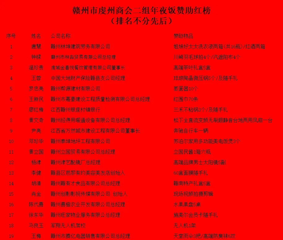 夜幕渐深,情谊更浓。这场充满温情与希望的年夜饭,在欢声笑语中落下帷幕。此次晚宴不仅是一次辞旧迎新的团圆相聚,更是一次凝聚人心、共谋发展的重要契机,既回顾了过往携手并进的珍贵时光,也坚定了未来并肩前行的信心与决心。展望2026年,赣州市虔州商会二组将继续以党建为引领,以服务为核心,以团结为纽带,充分发挥桥梁纽带作用,搭建更优质的政企沟通、资源整合、合作共赢平台,与全体会员企业一道,在新时代的征程上勇毅前行,为促进民营经济健康发展、助力区域经济高质量发展书写更加绚丽的篇章!
