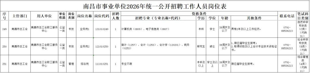 南昌市事业单位2026年统一公开招聘工作人员公告
