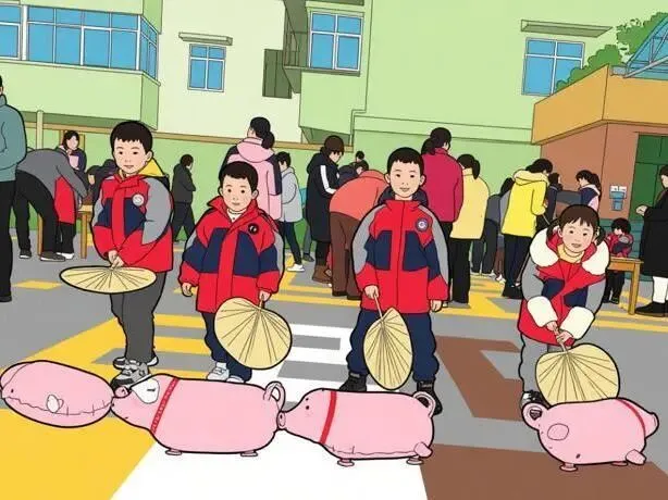 🔹游戏1—赶“年猪”:用扇子扇动道具气球冲向终点,全程扇子不能碰道具,考验手速和专注力,通关就有奖励!