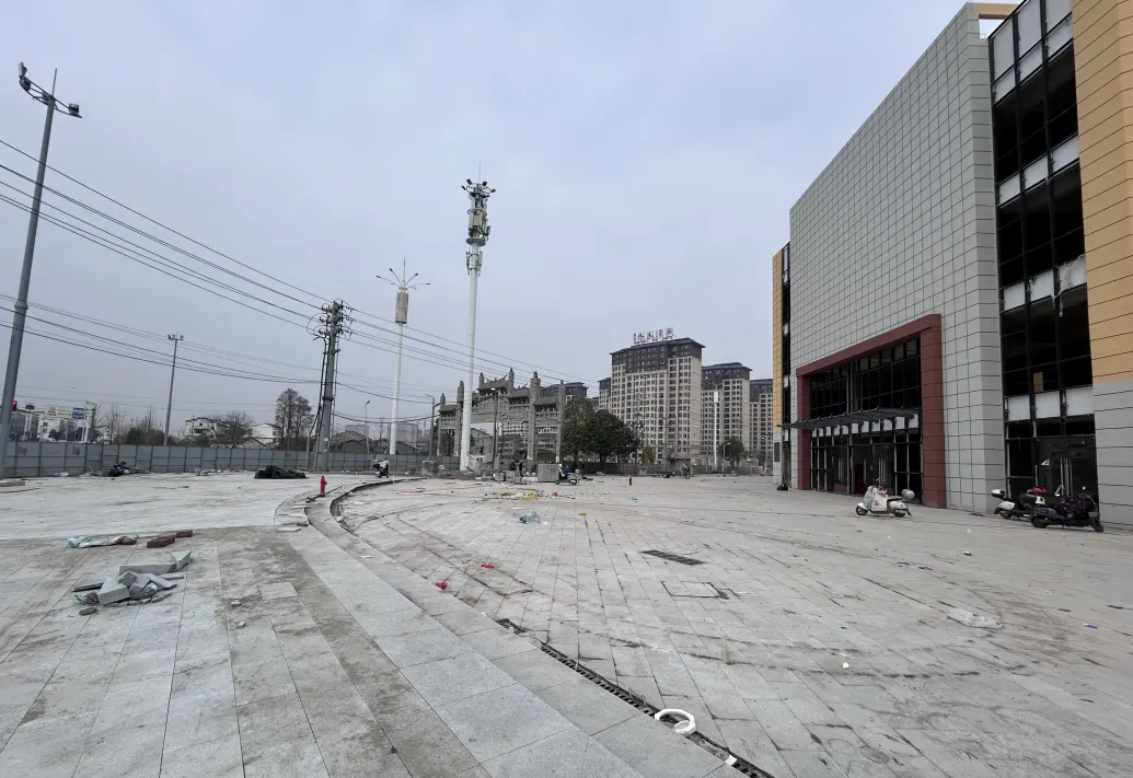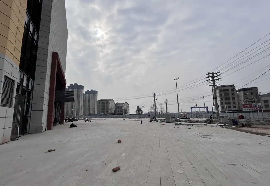 室外区域的变化更为显著,邻里广场主入口前的广场及建筑周边地面,已基本完成地砖铺设。
