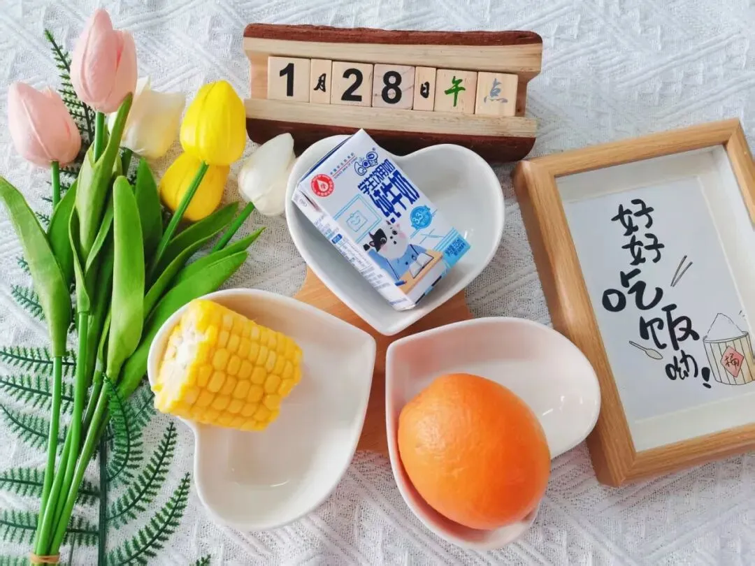 牛奶、玉米棒、脐橙