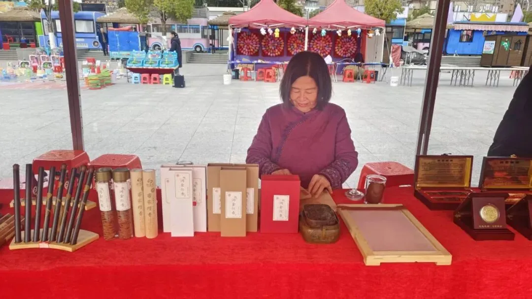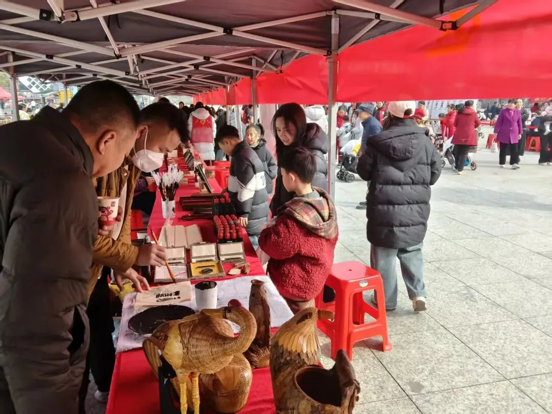 2026年2月3日上午“厚德赣州 瑞金有礼”——2026年瑞金市道德模范与“身边好人”现场交流暨“我在新时代文明实践中心过大年”文明集市活动在文化艺术中心广场举行,我市瑞金竹编工艺省级传承人杨荣仿获评2025年度敬业奉献类“瑞金好人”,同时我馆组织瑞墨制作技艺、传统竹编工艺、手工艺术模具雕刻钢模技艺、留青竹刻、紫砂壶制作技艺、柏木线香制作技艺、擂茶制作技艺、酸菜制作技艺等非遗项目在现场进行集中展示和销售。