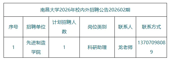 根据南昌大学先进制造学院工作需求,秉持“公开、平等、择优”的原则,现面向社会公开招聘科研助理人员1名(管理岗,非事业编制),具体招聘事宜如下: