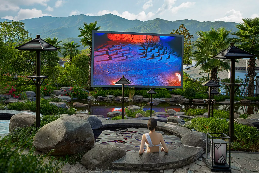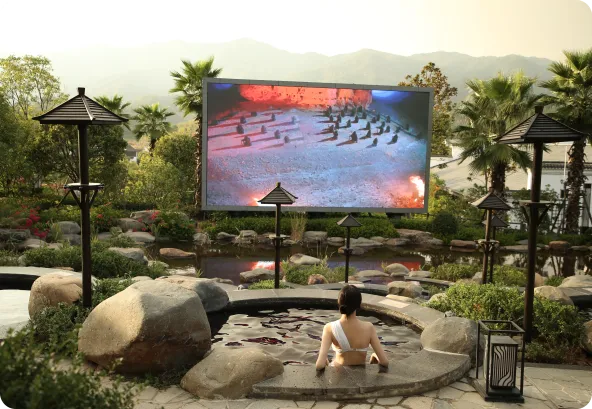在享受温泉的同时,也能观影