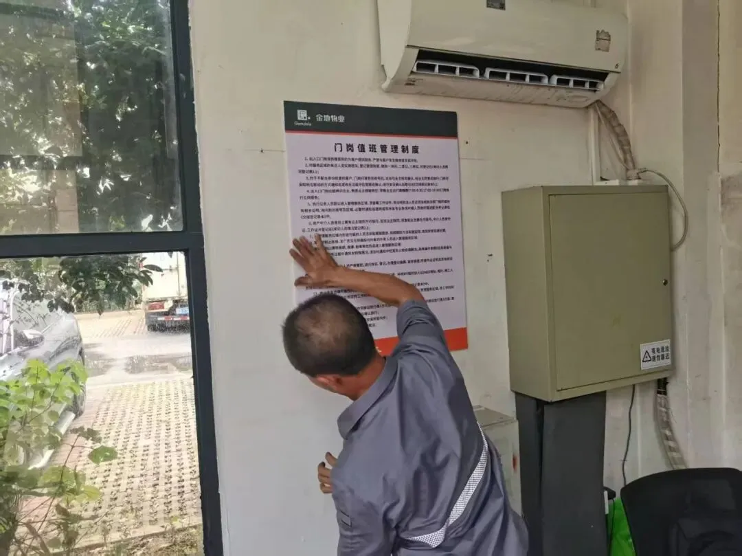 门岗焕新:全面清理岗亭周边杂物,刷新岗亭外观,推行“早送晚迎”服务,让归家的第一站更加明亮温馨。