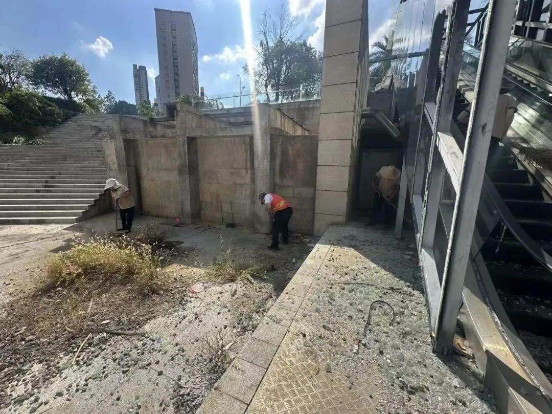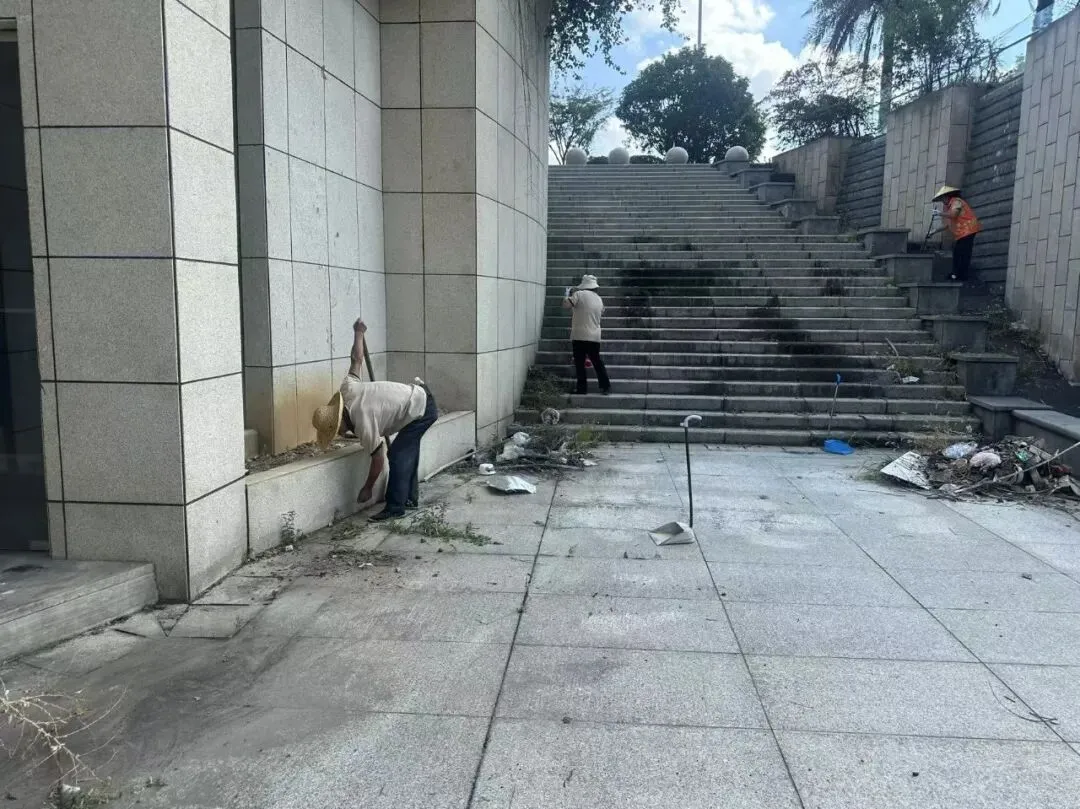 卫生死角清理:针对国光下沉广场开展“环境美颜日”行动,清理积存落叶与杂物,让公共空间焕然一新。